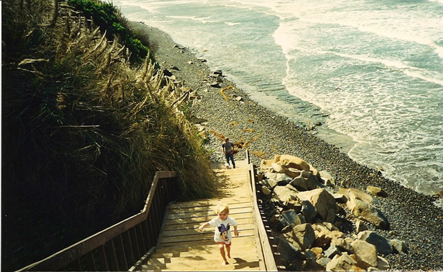 Pictures (from left to right): (1)On the trail to the beach at San Elijo State Beach, California (near San Diego) 1998. (2)Campground at San Elijo State Beach, California