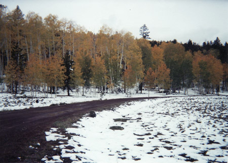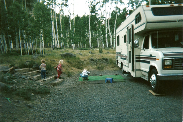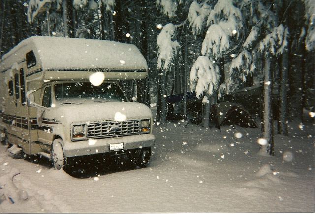 Pictures (from left to right): (1)Campground near Fish Lake Utah, early October 2002 (shortly before we had to move to Oregon) (2)Early spring snowstorm (blizzard) in Yosemite Valley, March 1999