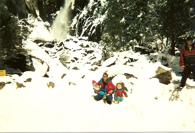 Pictures (from left to right): (1)Hiking to Bridaveil Falls with Michelle and Danielle, March 1999 (2)Family in Yellowstone; Jodie, Carl, Danielle, Timothy (Michelle took the picture)