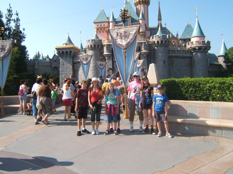Pictures (from left to right): (1) Family plus my sister Donna Strohmeyer-Brothers and nephew Zack along with family friend Mary at Sleeping Beauty Castle in Disneyland (2) Family with Mickey Mouse; Jodie, Danielle, Timothy, Mary (friend), Michelle
