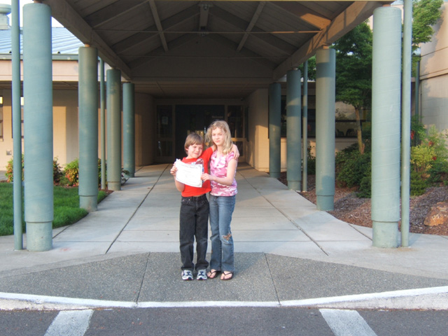 Pictures (from left to right): (1) Timothy and friend ready to go fishing on Holy Rovers Camping trip to Lake Selmac, Oregon; (2) Timothy’s 5th grade graduation from Parkside Elementary with Danielle.