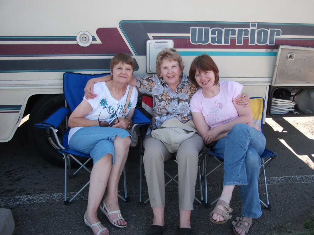 Pictures (from left to right): (1) Fish Lake Utah, Incoming Thunderstorm (2) Boomtown RV Park West of Reno Nevada; Judy (Jodie’s sister), Diane (Jodie’s sister), Jodie