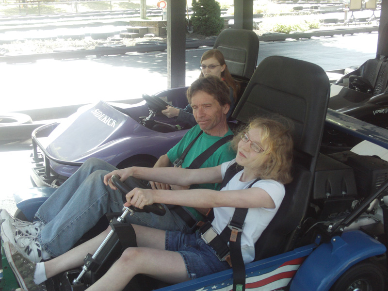 Pictures (from left to right): (1) Michelle, Danielle, Carl in “Cars” at Wallowa (2)Timothy, Car ride at Wallowa